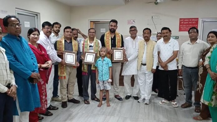 बच्चे के स्वस्थ होने पर अग्रहरी समाज के महामंत्री सुशील अग्रहरी बबलू ,अध्यक्ष विमल अग्रहरी सहित परिजनों ने डॉक्टर मानस प्रकाश सिंह, डॉ. दीपक खेतान और डॉ. हिमांशु अग्रहरि को पटका और स्मृति चिन्ह भेंट कर सम्मानित किया।
