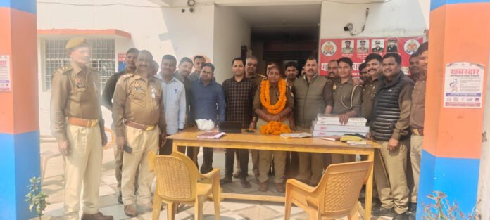 बांसी सिद्धार्थनगर। जोगिया थाना परिसर में समारोह आयोजित कर यहां से स्थानांतरित हुए थानाध्यक्ष मीरा चौहान को विदाई दी गई। जिला सिद्धार्थ नगर के जोगिया थाना पर मंगलवार को आयोजित आयोजित विदाई समारोह थानाध्यक्ष मीरा चौहान के नेतृत्व की चर्चा करते हुए उनके उज्ज्वल भविष्य की कामना की गई। इस दौरान उन्हें फूलों की माला व भगवान श्रीराम का स्मृति चिन्ह देकर उन्हें सम्मानित किया गया। थानाध्यक्ष जोगिया मीरा चौहान प्रभारी एंटी रोमियो सेल सिद्धार्थ नगर बनाया गया।