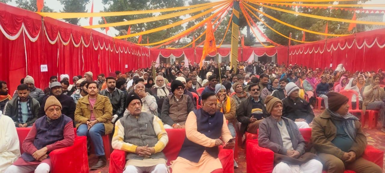 बांसी सिद्धार्थनगर। तिलक इंटर कॉलेज बांसी के मैदान में रविवार दोपहर लगभग 12:00 बजे विशाल हिंदू सम्मेलन कार्यक्रम का आयोजन किया गया जिसमें बतौर और मुख्य अतिथि प्रांत प्रचारक गोरक्ष प्रांत रमेश जी मौजूद रहे। कार्यक्रम के अध्यक्षता मायाराम शर्मा ने किया। अपने संबोधन में प्रांत प्रचारक रमेश जी ने कहा कि पहले इस देश के अंदर आध्यात्मिक शक्तियां थी, पहले इस देश में सनातनी शक्तियां थी, हिंदूवादी शक्तियों को संग्रहित करके, संगठित करके सारी बाधाओं को दूर कर राम मंदिर का भव्य निर्माण कराया गया। इस देश के अंदर एक बड़ा परिवर्तन लाया गया। कुछ लोग प्रश्न करते हैं कि राष्ट्रीय स्वयंसेवक संघ ने देश के लिए क्या किया?