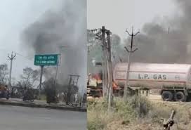 टैंकर का टायर फटने से लगी भीषण आग, दमकल ने पाया काबू