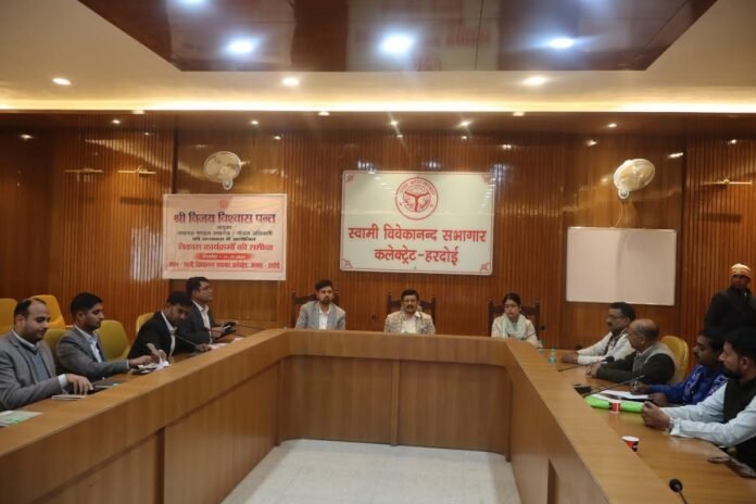 हरदोई स्वामी विवेकानन्द सभागार कलेक्ट्रेट में आयुक्त लखनऊ मण्डल विजय विश्वास पंत की अध्यक्षता मे राजनैतिक दलों के प्रतिनिधियों के साथ विधानसभा निर्वाचन क्षेत्रों की निर्वाचक नामावलियों का विशेष प्रगाढ़ पुनरीक्षण कार्यक्रम के सम्बंध में बैठक आहूत की गयी। उन्होंने राजनैतिक दलों के प्रतिनिधियों से विधानसभावार एसआईआर की प्रगति के बारे में चर्चा की। उन्होंने बताया कि घर-घर सर्वे के दौरान जो मतदाता नहीं मिल रहे है, मृतक श्रेणी के है, डुप्लीकेट हैं, पूर्ण रूप से स्थानातरित हो गये है, या गणना प्रपत्रों को वापस देने से इंकार कर रहे है, ऐसे मतदाताओं को वेरीफाइ करते हुए सम्बंधित बीएलओ के द्वारा बनायी गयी एएसडीडी सूची में सम्मिलित किया जा रहा है।