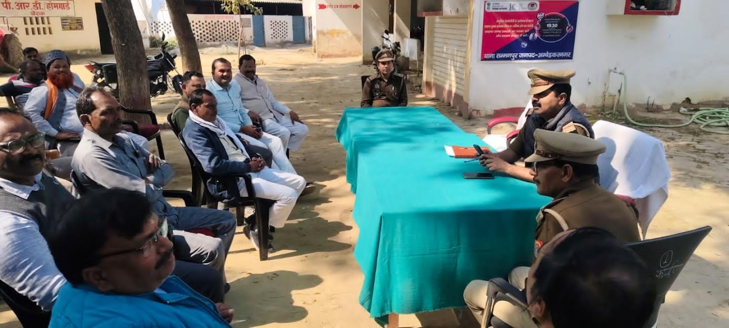 हजपुरा, अंबेडकरनगर सम्मनपुर थाने में गुरुवार को आगामी त्योहारों के मद्देनजर पीस कमेटी की बैठक आयोजित की गई। बैठक में क्षेत्र के ग्राम प्रधानों, व्यापारियों एवं संभ्रांत नागरिकों ने भाग लिया। इस दौरान त्योहारों को सकुशल संपन्न कराने और क्षेत्र में शांति व्यवस्था बनाए रखने को लेकर विस्तार से चर्चा की गई।