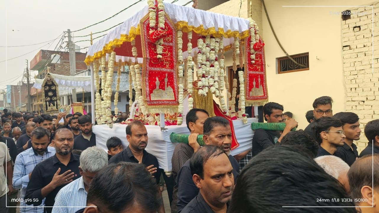 महत्वपूर्ण ख़बर जलालपुर अम्बेडकरनगर इस्लाम धर्म के प्रवर्तक हज़रत मोहम्मद साहब के उत्तराधिकारी व शिया समुदाय के पहले इमाम हज़रत अली अलैहिस्सलाम की शहादत दिवस 21वीं रमजान पर विगत तीन दिनों से जारी शोकाकुल कार्यक्रमों में बीती रात छोटे इमामबाड़ा में अंजुमन जाफरिया के बैनर तले मजलिस के बाद हज़रत अली के ताबूत बरामद किए गए। जहां नौहा ख्वानी व सीनाजनी का दौर जारी रहा। जाफराबाद बड़े इमाम बाड़ा पर देर रात तक जारी मजलिस में मर्सिया ख्वानी के बीच हदीस ख्वान शमीम हैदर ने मौला अली की शहादत को मार्मिक ढंग से प्रस्तुत किया। अंजुमन अब्बासिया की नौहा ख्वानी से माहौल गमगीन हुआ।