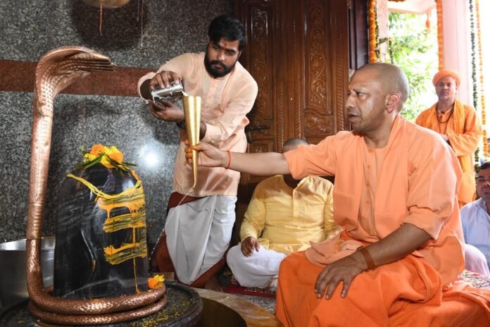 प्राचीन मानसरोवर मंदिर में सीएम योगी ने देवाधिदेव महादेव को विल्व पत्र, कमल पुष्प, दुर्वा, अनेकानेक पूजन सामग्री अर्पित करने कर बाद जल, गोदुग्ध और गन्ने के रस से रुद्राभिषेक किया। गोरखनाथ मंदिर के विद्वत पुरोहितगण ने शुक्ल यजुर्वेद संहिता के रुद्राष्टाध्यायी के महामंत्रों द्वारा रुद्राभिषेक कराया। रुद्राभिषेक के बाद मुख्यमंत्री वैदिक मंत्रोच्चार के बीच हवन व आरती कर अनुष्ठान को पूर्ण किया।