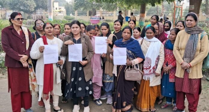 आजमगढ़। ट्रांसफर और एरियर से प्रताड़ित महिला स्वास्थ्यकर्मी पहुंची डीएम दरबार मुख्यमंत्री तक लगाई गुहार। मंगलवार को मातृ शिशु कल्याण संघ के तत्वाधान में जिलाधिकारी कार्यालय पहुंची एएनएम बहनों ने जिला प्रशासन को मुख्यमंत्री के नामित ज्ञापन सौंपकर न्याय की गुहार लगाई है। संघ जिला मंत्री सुशीला भारद्वाज का आरोप है कि ब्लॉकों पर हम एनम बहनों से पैसे की मांग की जा रही है जो बहने देने में असमर्थ है उन्हें कभी ट्रांसफर तो कभी एरियर के नाम पर मानसिक रूप से प्रताड़ित किया जा रहा है। हम बहनों का घर से लम्बी दूरी पर तबादला किया जा रहा है। सभी जिले में 2000 से 2800 ग्रेड पे एरियर का भुगतान हो चुका लेकिन आजमगढ़ जनपद में भुगतान के नाम पर पैसे की मांग की जा रही है। जिलाधिकारी को सौंपे गए ज्ञापन मे ए0एन0एम0 द्वारा बताया गया कि ए0एन0एम0 द्वारा अपने वर्तमान स्थान पर रहकर के भी खाली पड़े सब सेंटर पर नियमित टीकाकरण किया जा रहा है।