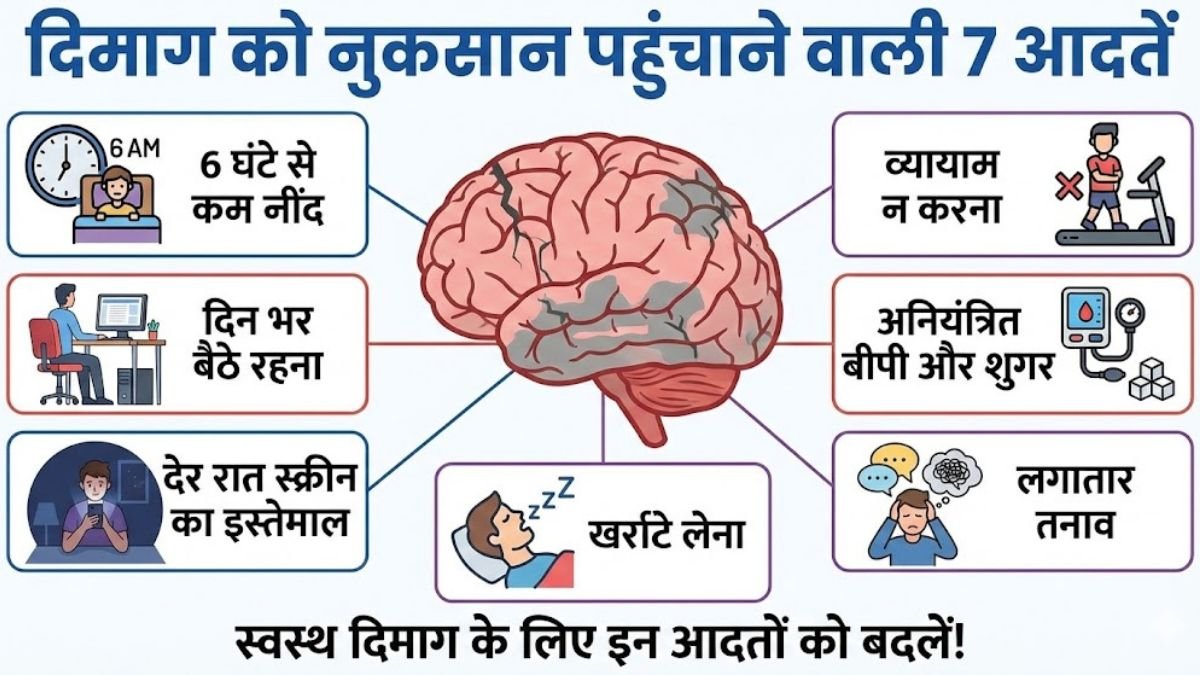 डॉ. सुधीर कुमार (MD DM) ने ऐसी ही 7 सामान्य आदतों के बारे में आगाह किया है, जो हमारे दिमाग को चुपके-चुपके नुकसान पहुंचाती हैं। इसलिए अगर आप अपनी याददाश्त को लंबे समय तक बरकरार रखना चाहते हैं, तो इन 7 आदतों को आज ही बदलने की जरूरत है।