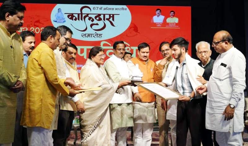 मुख्य अतिथि प्रभारी मंत्री गौतम टेटवाल, विशिष्ट अतिथि निगम सभापति कलावती यादव रहे। अध्यक्षता सम्राट विक्रमादित्य विश्वविद्यालय के कुलगुरु प्रो.अर्पण भारद्वाज ने की। मंच पर महापौर मुकेश टेटवाल, विधायक अनिल जैन, सचिव डा.शैलेंद्र शर्मा, कलेक्टर रोशन कुमार सिंह उपस्थित रहे। संचालन डा.संदीप नागर ने किया। शहर के मोहल्ला लक्ष्मीपुरा निवासी मात्र 22 वर्ष की आयु में यह उपलब्धि प्राप्त कर आर्यन ने अपने परिवार, गुरुजनों और पूरे ललितपुर जनपद का नाम गौरवान्वित किया है। सम्मान प्राप्त करने के बाद उन्होंने कहा कि यह पुरस्कार केवल मेरा नहीं, बल्कि मेरे पिता व माता, मेरे गुरुओं और मेरे शहर ललितपुर का है। मैं आगे भी अपनी कला के माध्यम से समाज को जोडऩे और प्रेरित करने का प्रयास करता रहूंगा।