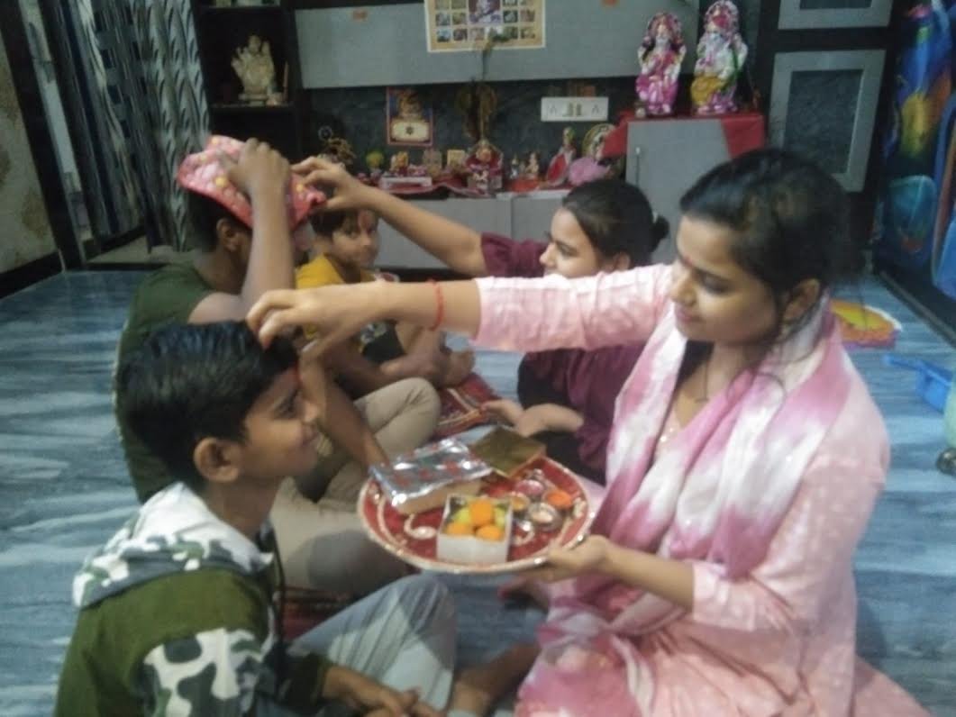बहनों ने भाइयों को तिलक कर लंबी उम्र की कामना की,भाइयों ने दिए उपहार