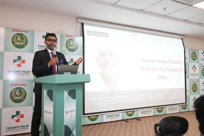 टेन्डर पाम हॉस्पिटल ने अपनी पहली बोन मैरो ट्रांसप्लांट  प्रक्रिया की सफलता की घोषणा करते हुए एक महत्वपूर्ण मील का पत्थर स्थापित किया है। यह प्रक्रिया 57 वर्षीय मरीज श्री रमन के लिए की गई, जो 7 जनवरी 2025 को अस्पताल में भर्ती हुए थे, और उन्हें हमारे समर्पित चिकित्सा दल द्वारा जीवन रक्षक उपचार प्रदान किया गया।