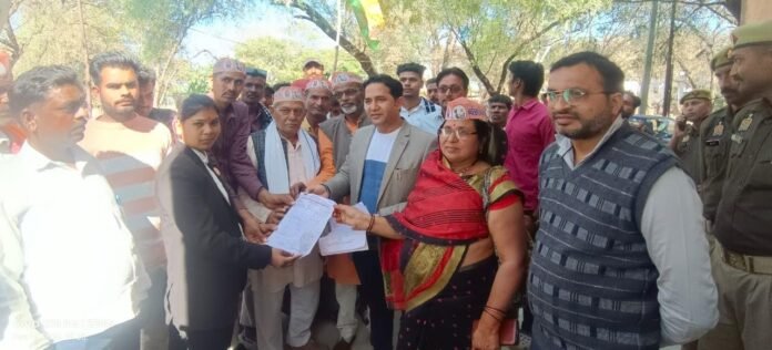प्रदर्शन के बाद किसानों ने जिलाधिकारी को संबोधित ज्ञापन उपजिलाधिकारी कुलपहाड़ सौंपा