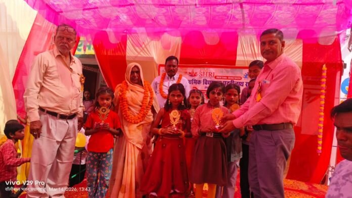 प्रयागराज : विकास खंड उरुवा स्थित पीएम श्री प्राथमिक विद्यालय पट्टीनाथ राय में वार्षिकोत्सव एवं पुरस्कार वितरण समारोह कार्यक्रम बड़े ही धूमधाम से संपन्न हुआ। इसमें छात्र-छात्राओं ने रंगारंग सांस्कृतिक कार्यक्रम प्रस्तुत किया। शनिवार को विद्यालय के वार्षिकोत्सव कार्यक्रम के शुभारंभ अवसर पर मुख्य अतिथि के रूप में उपस्थित ग्राम प्रधान प्रतिनिधि पट्टीनाथ राय मोहिनाथ मिश्रा ने माँ सरस्वती की प्रतिमा पर माल्यार्पण व दीप प्रज्ज्वलित कर कार्यक्रम का शुभारंभ किया। विद्यालय की नन्हें-मुन्हें बच्चियों ( आरती, राखी, मासूम, सुरभि, संध्या, रोली व रितिका ) द्वारा माँ सरस्वती की वंदना व स्वागत गीत प्रस्तुत की गई।