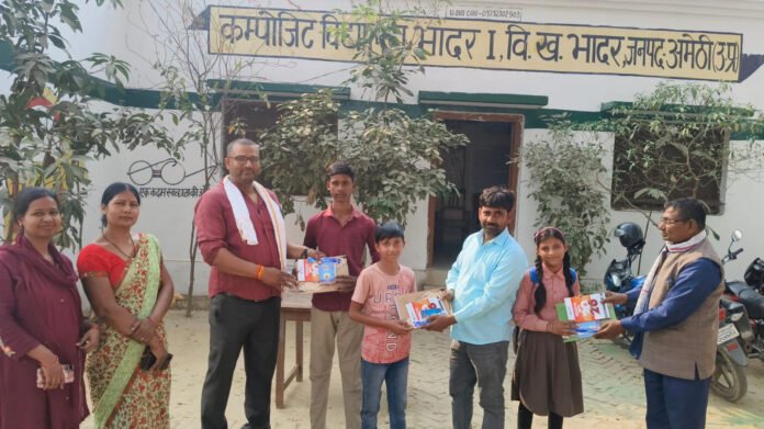 राष्ट्रीय आय एवं योग्यता आधारित छात्रवृत्ति परीक्षा में कम्पोजिट विद्यालय भादर प्रथम के तीन बच्चों ने मेरिट में स्थान बनाया है। गुरुवार को होली के अवकाश के बाद विद्यालय खुलने पर प्रभारी प्रधानाध्यापक संजीव कुमार भारती ने बच्चों की हौसला-अफजाई को उन्हें पुरस्कृत किया। बच्चों को इंग्लिश डिक्शनरी, सामान्य ज्ञान की पुस्तक,नोट बुक और पेन प्रदान करते हुए उन्हें और मेहनत से पढ़ाई करने के लिए प्रेरित किया और उज्जवल भविष्य की कामना की।