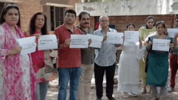गुस्साए लोगों ने निगम कमिश्नर से अपील करते हुए कहा, कमिश्नर साहब! कुएं खुदवा दीजिए, मटके से ही पानी भर लेंगे। लोगों के अनुसार सोसायटी के ए, बी और सी ब्लाक में बीते चार दिनों से पानी की सप्लाई बाधित है, जिससे परेशानी बढ़ गई है।