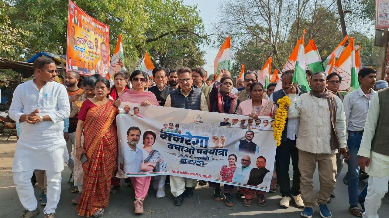 बाराबंकी। शुक्रवार को जिला कांग्रेस अध्यक्ष मोहम्मद मोहसिन की अगुवाई में मनरेगा बचाव अभियान के अन्तर्गत एक पदयात्रा निकाली गयी जिसमें मुख्य अतिथी के रूप में जिला प्रभारी ममता चौधरी एवं पूर्व सांसद पीएल पुनिया मौजूद रहे। पीएल पुनिया ने कहा कि, वर्तमान सरकार कांग्रेस की कई योजनाओं का नाम बदलने व संवैधानिक तौर पर आम जनमानस के अधिकारों को सीमित करने का कार्य कर रही है, महान स्वतंत्रता संग्राम सेनानी एवं राष्ट्रपिता महात्मा गांधी के नाम से यह योजना पूरे भारत में सुचारू रूप से संचालित थी। कांग्रेस सरकार में मजदूर, गरीब किसान, इस योजना का लाभ उठा रहे थे लेकिन पिछले दस बारह वर्षों से मजदूर किसान गरीब इस योजना से वंचित हो रहा है, तथा उसके अधिकारों का हनन भी किया जा रहा है।