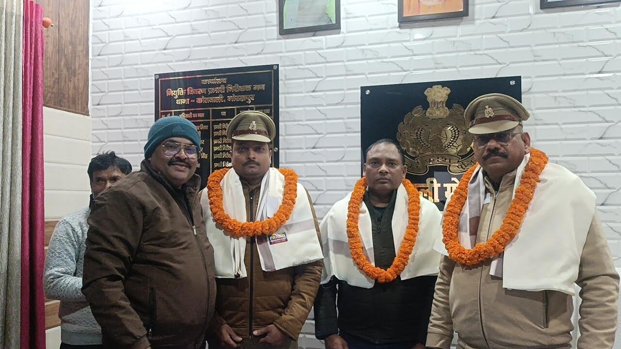 गोरखपुर। कोतवाली थाना क्षेत्र के माया बाजार स्थित हठ्ठी माता मंदिर में विगत दिनों हुई चोरी का खुलासा करने वाली टीम को माया बाजार वार्ड के पार्षद समद गुफरान ने कोतवाली थाने पहुंचकर कोतवाल छत्रपाल सिंह, विवेचन उपनिरीक्षक विवेक कुमार चतुर्वेदी, नखास चौकी इंचार्ज दुर्गेश को शाल पहनाकर व माल्यार्पण और मिठाई खिलाकर स्वागत किया।