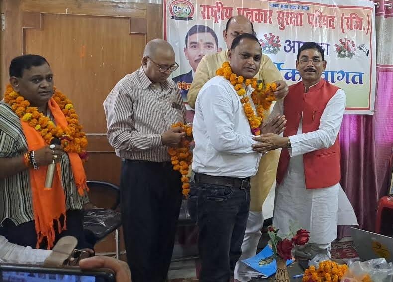 लालगंज /आजमगढ़। राष्ट्रीय पत्रकार सुरक्षा परिषद रजि0 के प्रदेश कार्यालय में आयोजित कार्यक्रम में प्रदेश के जिले से आये हुए सभी जिलाध्यक्षों को माल्यार्पण कर सम्मानित किया गया। वही संगठन के राष्ट्रीय अध्यक्ष देवेंद्र कुमार मिश्रा ने आजमगढ़ के जिलाध्यक्ष संजय कुमार को भी उत्कृष्ट कार्य करने पर कार्यालय पर सम्मानित किया। संगठन के राष्ट्रीय अध्यक्ष देवेंद्र कुमार मिश्रा ने पत्रकारों के हितों पर विस्तार से चर्चा किया। राष्ट्रीय अध्यक्ष देवेंद्र कुमार मिश्रा ने बताया कि पत्रकारों की हक की लड़ाई लड़ने के लिए हम सभी संघर्ष के लिए तैयार हूँ।