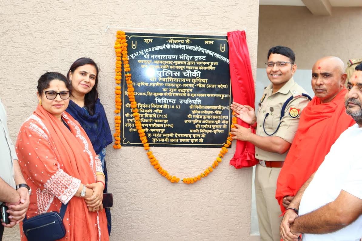 गोण्डा। कानून-व्यवस्था को और अधिक सुदृढ़ एवं प्रभावी बनाने की दिशा में एक महत्वपूर्ण कदम उठाते हुए जिलाधिकारी गोण्डा श्रीमती प्रियंका निरंजन एवं पुलिस अधीक्षक गोण्डा श्री विनीत जायसवाल द्वारा थाना छपिया क्षेत्रांतर्गत श्री नर नारायण मंदिर ट्रस्ट के तत्वावधान नव-निर्मित स्वामी नारायण पुलिस चौकी का विधिवत फीता काटकर उद्घाटन किया गया। इस अवसर पर उपस्थित अधिकारियों एवं जनप्रतिनिधियों को संबोधित करते हुए पुलिस अधीक्षक महोदय ने कहा कि नई पुलिस चौकी के निर्माण से क्षेत्र में पुलिस की पहुँच और अधिक सशक्त होगी तथा आमजन को त्वरित सहायता उपलब्ध हो सकेगी । उन्होंने कहा कि शासन की मंशा के अनुरूप आमजन को सुरक्षित एवं भयमुक्त वातावरण प्रदान करना प्रशासन की प्राथमिकता है । पुलिस अधीक्षक गोण्डा श्री विनीत जायसवाल ने अपने संबोधन में कहा कि इस नई चौकी के संचालन से अपराध नियंत्रण, गश्त व्यवस्था तथा आपातकालीन परिस्थितियों में त्वरित प्रतिक्रिया सुनिश्चित की जा सकेगी।