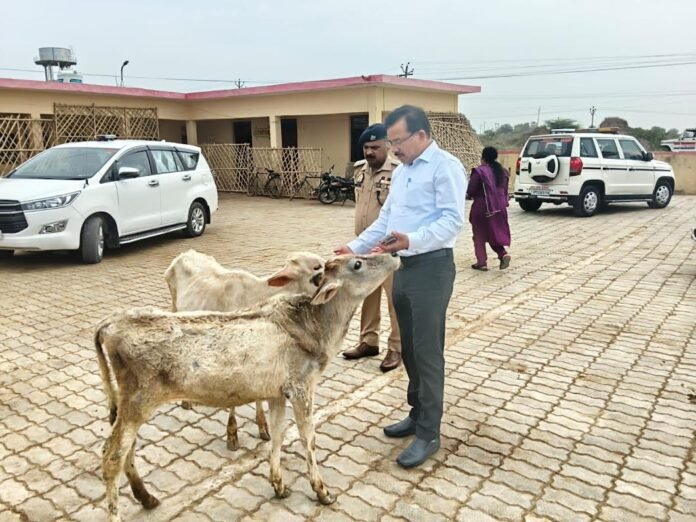 उरई(जालौन)। जिलाधिकारी राजेश कुमार पाण्डेय एवं पुलिस अधीक्षक डॉ. दुर्गेश कुमार ने तहसील माधौगढ़ क्षेत्र स्थित मीगनी गौशाला का औचक निरीक्षण कर व्यवस्थाओं का जायजा लिया। निरीक्षण के दौरान अधिकारियों ने गौशाला में संरक्षित गोवंश की स्थिति, चारा-पानी की उपलब्धता, साफ-सफाई एवं स्वास्थ्य सुविधाओं का बारीकी से निरीक्षण किया। इस दौरान जिलाधिकारी व पुलिस अधीक्षक ने स्नेहपूर्वक गोवंश को गुड़ और चना भी खिलाया।