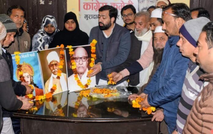 मुरादाबाद। काशी हिन्दू विश्वविद्यालय के प्रणेता भारत रत्न महामना पंडित मदन मोहन मालवीय की जयंती साथ महाराजा बिजली पासी की जयंती व स्वतंत्रता संग्राम सेनानी भारत रत्न चक्रवर्ती राजगोपालाचारी की पुण्य तिथि पर कांग्रेस कार्यालय में कार्यक्रम का आयोजन किया गया। सभी के चित्र पर पुष्पांजलि करते हुए महान आत्माओं से प्रेरणा लेने का आह्वान किया गया।