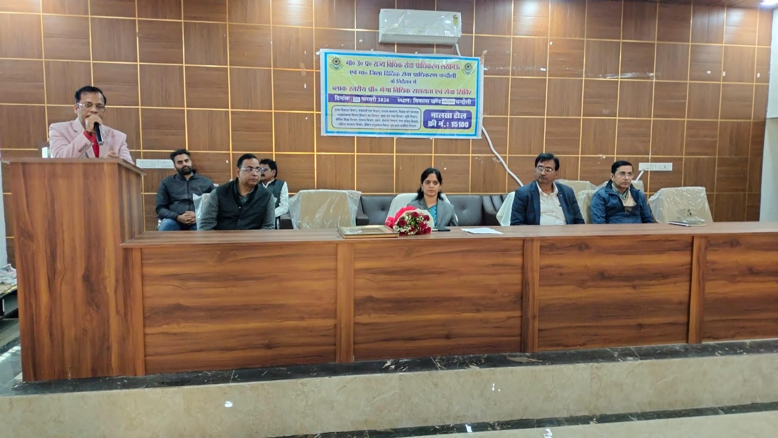 चन्दौली । सकलडीहा विकास खंड सभागार में शुक्रवार को ब्लॉक स्तरीय प्री-मेगा विधिक सहायता एवं सेवा शिविर का आयोजन किया गया। इसमें सिविल जज सीनियर डिवीजन व पूर्णकालिक सचिव जिला विधिक सेवा प्राधिकरण डॉ. इंदु रानी ने विभिन्न कानूनी सहायता और योजनाओं के बारे में विस्तार से जानकारी दी। इस मौके पर विभिन्न विभाग की ओर से लगायी गयी स्टॉल का निरीक्षण किया। इस अवसर पर बड़ी संख्या में महिलाएं उपस्थित रहीं।