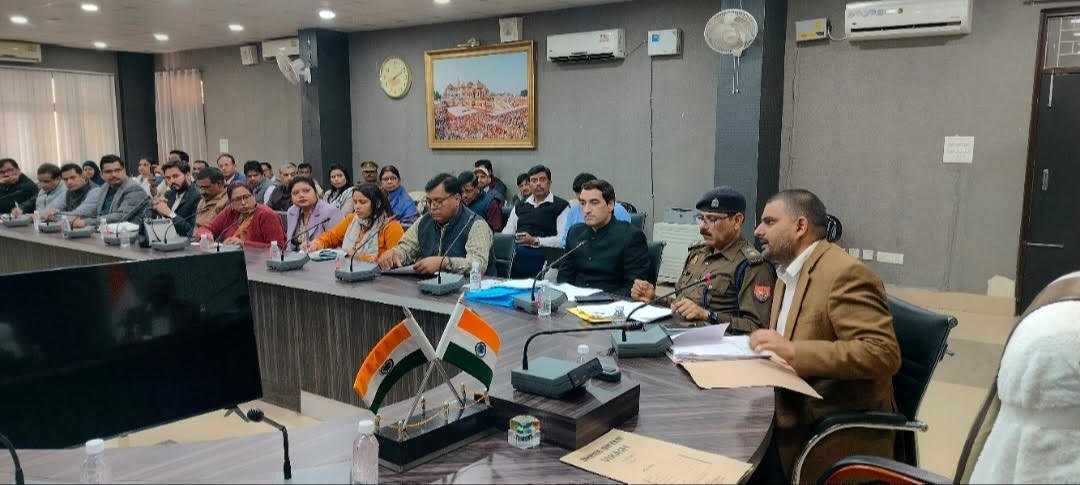 आजमगढ़। जिलाधिकारी के मार्ग निर्देशन में अपर जिलाधिकारी प्रशासन श्री राहुल विश्वकर्मा की अध्यक्षता में आज कलेक्ट्रेट सभागार में दिनांक 06 दिसम्बर 2025 को आयोजित होने वाली सहायक अध्यापक, प्रशिक्षित स्नातक श्रेणी (पुरूष/महिला शाखा) (प्रा0) परीक्षा-2025 की परीक्षा को निष्पक्ष, निर्विघ्न एवं सकुशल सम्पन्न कराने के सम्बन्ध में सेक्टर/स्टैटिक मजिस्ट्रेट एवं केन्द्र व्यवस्थापकों के साथ बैठक आयोजित की गयी। अपर जिलाधिकारी प्रशासन ने बताया कि सहायक अध्यापक, प्रशिक्षित स्नातक श्रेणी (पुरूष/महिला शाखा) (प्रा0) परीक्षा-2025 की परीक्षा जनपद आजमगढ़ में दिनांक 06 दिसम्बर 2025 को दो पालियों में (प्रथम पाली पूर्वान्ह 9ः00 बजे से 11 बजे तक एवं द्वितीय पाली अपरान्ह 3ः00 बजे से 5ः00 बजे तक) कुल 08 परीक्षा केन्द्रों-1-राजकीय बालिका इण्टर कालेज आजमगढ़ 2-राजकीय इ0का0 जमुड़ी आजमगढ़, 3-गांधी गुरूकुल इ0का0 भंवरनाथ, 4-श्री अग्रसेन कन्या इ0का0, 5-निस्वां इ0का0 आजमगढ़, 6-डीएवी पीजी कालेज आजमगढ़, 7-श्री अग्रसेन महिला पीजी कालेज आजमगढ़ एवं 8-श्री दुर्गा जी पीजी कालेज चण्डेश्वर आजमगढ़ पर आयोजित की जायेगी। उन्होने बताया कि जनपद में आयोजित उक्त परीक्षा में कुल 3552 परीक्षार्थी सम्मिलित होंगे। परीक्षा को सकुशल सम्पन्न कराने के लिए प्रत्येक परीक्षा केन्द्र पर 1-1 स्टैटिक/सेक्टर मजिस्ट्रेट तैनात किये गये हैं।