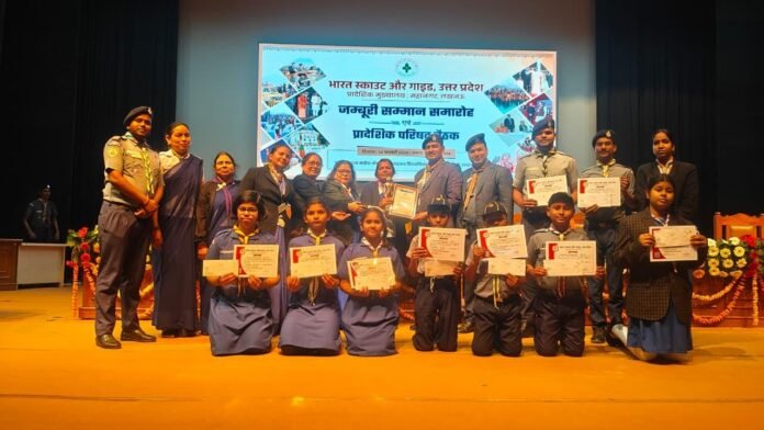 अम्बेडकरनगर।भारत स्काउट और गाइड उत्तर प्रदेश के तत्वाधान में राज्य स्तर पर आयोजित बीएसजी ज्ञान प्रतियोगिता का भीम राव अम्बेडकर विश्वविद्यालय लखनऊ में सम्मान समारोह आयोजित किया गया जिसमें जनपद अम्बेडकर नगर के तक्षशिला अकादमी के श्रेयांश वर्मा , अपूर्व सिंह और आदित्य प्रताप सिंह ने कब संवर्ग में पूरे प्रदेश में क्रमशः प्रथम द्वितीय व तृतीय स्थान , तक्षशिला अकादमी के आराध्या पटेल, नवधा मेहरोत्रा व अरीबा फातिमा ने क्रमशः प्रथम द्वितीय एवं तृतीय स्थान प्राप्त किया वहीं आदर्श जनता इंटर कॉलेज टांडा के स्काउट हर्षित गुप्ता ने स्काउट संवर्ग में प्रथम स्थान तक्षशिला अकादमी लोरपुर की आर्या उपाध्याय ने गाइड संवर्ग में प्रथम स्थान तथा बी पी स्काउट दल स्वतंत्र के रोवर संवर्ग में सिराज अहमद खान ने प्रथम स्थान प्राप्त कर पूरे जनपद का नाम रौशन किया जिन्हें भारत स्काउट और गाइड उत्तर प्रदेश के अध्यक्ष एवं पूर्व मंत्री जल शक्ति डॉक्टर महेंद्र सिंह एवं प्रादेशिक मुख्यायुक्त डॉक्टर प्रभात कुमार द्वारा पुरस्कार राशि और प्रमाण पत्र प्रदान कर सम्मानित किया गया। साथ ही 19वीं राष्ट्रीय जंबूरी में जनपद के उत्कृष्ट कार्य हेतु जनपद की जिला मुख्यायुक्त डॉक्टर तारा वर्मा जी को भी प्रदेश स्तर पर सम्मानित किया गया। जनपद के इस उपलब्धि पर जिला विद्यालय निरीक्षक प्रवीण कुमार तिवारी जिला बेसिक शिक्षा अधिकारी शैलेश कुमार पटेल प्रादेशिक संगठन आयुक्त स्काउट नौशाद अली सिद्दीकी प्रादेशिक संगठन आयुक्त गाइड रविंदर कौर शोखी प्रादेशिक प्रशिक्षण आयुक्त स्काउट अदनान हाशमी प्रादेशिक प्रशिक्षण आयुक्त गाइड सितारा त्यागी सहायक प्रादेशिक संगठन आयुक्त स्काउट अयोध्या मंडल कमलेश द्विवेदी जिला आयुक्त स्काउट राजेंद्र चौधरी जिला आयुक्त गाइड नीलम वर्मा तक्षशिला अकादमी के प्रधानाचार्य अभिषेक तिवारी प्रधानाचार्या वर्षा नागवानी आदर्श जनता इंटर कॉलेज के प्रधानाचार्य दिनेश यादव स्काउट मास्टर पवन कुमार चौरसिया जिला संगठन आयुक्त स्काउट बलिराम राजभर, जिला संगठन आयुक्त गाइड डॉक्टर प्रियंका तिवारी जिला प्रशिक्षण आयुक्त (स्काउट) श्री रवि प्रकाश चौधरी, जिला प्रशिक्षण आयुक्त (गाइड) श्रीमती सत्यवती देवी, जिला स्काउट मास्टर श्री रविंद्र कुमार, जिला गाइड कैप्टन श्रीमती श्वेता सिंह, ट्रेनिंग काउंसलर श्री बादल विश्वकर्मा, श्रद्धा शर्मा, आरती यादव एवं कोनल गुप्ता सहित अन्य गणमान्य व्यक्तियों ने चयनित कब बुलबुल स्काउट गाइड रोवर को बधाई देते हुए उनके उज्ज्वल भविष्य की कामना की।