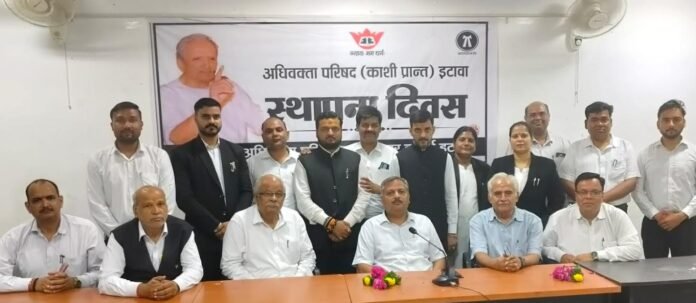 इटावा। अखिल भारतीय अधिवक्ता परिषद जनपद इटावा इकाई द्वारा बुधवार को सिंचाई विभाग गेस्ट हाउस में स्थापना दिवस कार्यक्रम मनाया गया।कार्यक्रम में मां सरस्वती के चित्र पर,माल्यार्पण कर,दीप प्रज्वलन करके कार्यक्रम की शुरुआत हुई।कार्यक्रम में उपस्थित मुख्य अतिथि अधिवक्ता परिषद काशी प्रांत उत्तर प्रदेश के प्रदेश महामंत्री नीरज सिंह ने सम्बोधित करते हुए कहा कि भारतीय न्याय व्यवस्था कैसे और दुरुस्त हो,विधि जानकारी का विस्तार हो,हर गांव गरीब तक विधिक जानकारी कैसे पहुंचे,इन सबके लिए अधिवक्ता परिषद कार्य करता आ रहा है।