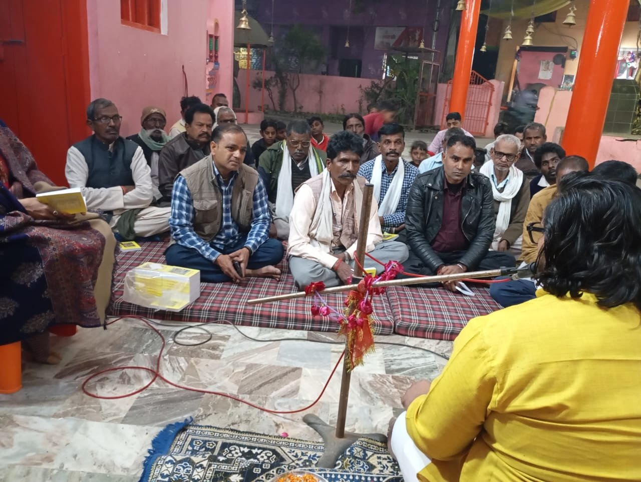 जिसमें मुख्य वक्ता कर्मयोगी स्वामी कृष्णानंद झा जी द्वारा जनमानस को गीता ज्ञान के माध्यम से ईश्वर का विराट रूप एवं ईश्वरी तत्व ब्रह्मांड से ग्रह से पृथ्वी से देश से प्रदेश से जिला से नगर से घर परिवार से व्यक्ति में व्याप्त है।