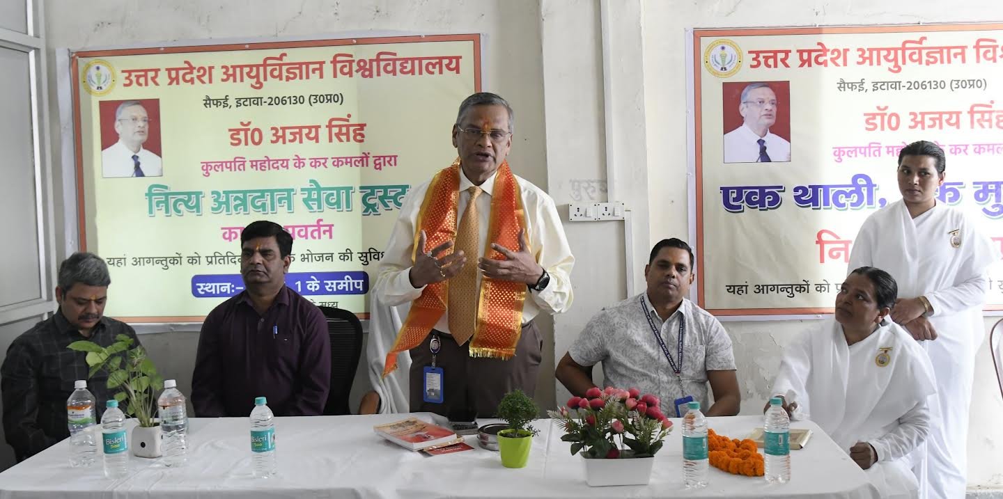 सैफई,इटावा। उत्तर प्रदेश आयुर्विज्ञान विश्वविद्यालय(यूपीयूएमएस) में शनिवार को नित्य अन्नदान ट्रस्ट के तत्वावधान में एक थाली,एक मुस्कान निशुल्क भोजन सेवा का शुभारंभ कुलपति प्रोफेसर(डॉ.) अजय सिंह द्वारा किया गया।कार्यक्रम का शुभारंभ दीप प्रज्वलन के साथ हुआ, जहाँ कुलपति ने विश्वविद्यालय परिवार व उपस्थित जनों को दीपावली की हार्दिक शुभकामनाएँ देते हुए कहा कि भोजन केवल शरीर की आवश्यकता नहीं,बल्कि करुणा और मानवता की पहचान है।