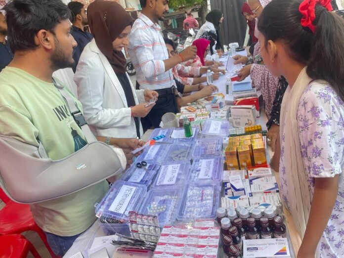 इस मेडिकल कैंप में जरूरी जांच के साथ-साथ मरीजों को मुफ्त दवाएं वितरित की गई आज के मेडिकल कैंप में लगभग 100 मरीज को देखकर उन्हें दवाएं दी गई।