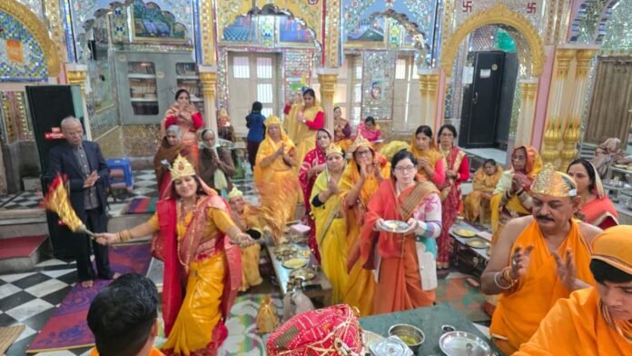 इटावा। श्री प्राचीन दिगंबर पंचायती जैन मंदिर,पंसारी टोला में एक दिवसीय भव्य धार्मिक कार्यक्रम का आयोजन किया गया।कार्यक्रम का प्रारंभ सुबह सात बजे भगवान आदिनाथ की पालकी यात्रा से हुआ,जिसमें बड़ी संख्या में श्रद्धालुओं ने सहभागिता की।पालकी यात्रा मंदिर से प्रारंभ होकर बजरिया चौराहा,पचराहा, राजागंज चौराहा,रंगलाल चौराहा, महावीर मार्ग और लालपुरा तिराहा होते हुए पुनःमंदिर पहुंची।यात्रा का स्थान–स्थान पर आरती उतारकर,पुष्पवर्षा एवं घोल-नगाड़ों के साथ भव्य स्वागत किया गया।मंदिर पहुंचने के बाद श्रीजी को पाण्डुकशिला पर विराजमान कराया गया।