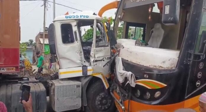 पंजाब से महराजगंज जा रही थी बस, ट्रेलर से हुई टक्कर