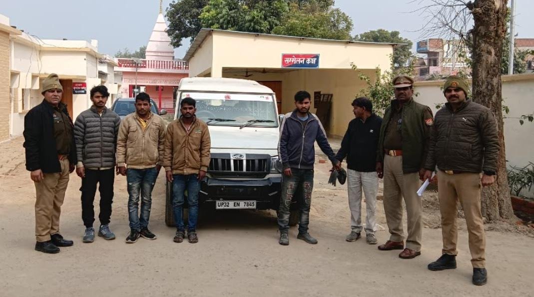 अम्बेडकरनगर जनपद में अपराधियों पर शिकंजा कसने के लिए चलाए जा रहे विशेष अभियान में थाना इब्राहिमपुर पुलिस ने बड़ी सफलता हासिल की है। पुलिस ने अंतरजनपदीय वाहन चोर गिरोह के 5 सदस्यों को गिरफ्तार किया तथा उनके पास से फर्जी नंबर प्लेट लगी एक महिंद्रा बोलेरो वाहन बरामद किया।यह कार्रवाई 4 जनवरी की रात करीब 11:45 बजे बरुआ जालाकी हंसपुर मोड़ के पास वाहन चेकिंग के दौरान हुई। संदिग्ध बोलेरो को रोककर जांच करने पर वाहन चोरी का होने का खुलासा हुआ। आगे की पड़ताल में पता चला कि वाहन पर लगी नंबर प्लेट पूरी तरह नकली थी और आरोपी इसे दूसरे जनपद में बेचने की फिराक में थे।गिरफ्तार अभियुक्त सुल्तानपुर और वाराणसी जनपद के रहने वाले हैं।