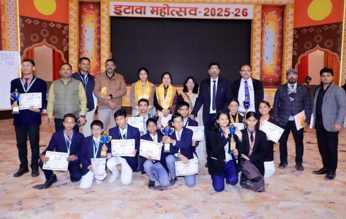 इटावा। इटावा महोत्सव के तत्वाधान में बृहस्पतिवार को नारायन काॅलेज ऑफ साइंस एण्ड आर्ट्स के संयोजन में क्विज कान्टेस्ट प्रतियोगिता का आयोजन प्रदर्शनी पण्डाल में किया गया। प्रतियोगिता का शुभारम्भ कार्यक्रम में पधारे मुख्य अतिथि डाॅ.मुकेश यादव ए.डी.आई.ओ.एस.,संत विवेकानंद विद्यालय प्रधानाचार्य डाॅ.आनन्द मोहन (सिटी कोर्डिनेटर सी.बी.एस.ई.इटावा), इंजी.हरि किशोर तिवारी,चेयरमैन नारायन ग्रुप ऑफ इन्सटीट्यूशन,अनूप मिश्रा,प्रधानाचार्य,थियोसोफिकल इण्टर कालेज,कमल कुमार,प्रधानाचार्य सुदिति ग्लोबल एकेडमी,सौरभ दुबे,प्रधानाचार्य सेविन हिल्स इण्टर कालेज,अभिषेक सक्सेना,प्रधानाचार्य पुलिस मार्डन स्कूल, वेदपाठी त्रिपाठी,प्रधानाचार्य एरस्टोटल वल्र्ड स्कूल,डाॅ.श्रेता तिवारी डायरेक्टर नारायन ग्रुप ऑफ इन्सटीट्यूशन,श्रीमती पूनम शर्मा और कार्यक्रम संयोजक एवं प्रधानाचार्य नारायन काॅलेज डाॅ.धर्मेन्द्र शर्मा तथा विभिन्न विद्यालयों से आये हुए प्रधानाचार्य के द्वारा माँ सरस्वती पर माल्यार्पण एवं दीप प्रज्ज्वलन के साथ हुआ।मुख्य अतिथि डा.मुकेश यादव एडीआईओएस ने अपने सारगर्भित उद्बोधन के माध्यम से सभी प्रतिभागियों को क्विज कम्पटीशन का महत्व बताया।