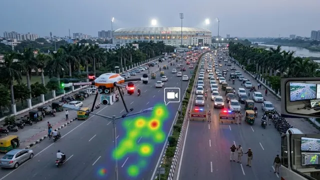 लखनऊ पुलिस ने ट्रैफिक सुधारने के लिए एआई ड्रोन का उपयोग शुरू किया है। इकाना स्टेडियम के पास जाम पर नजर रखने के लिए यह हाईटेक ट्रायल किया जा रहा है।