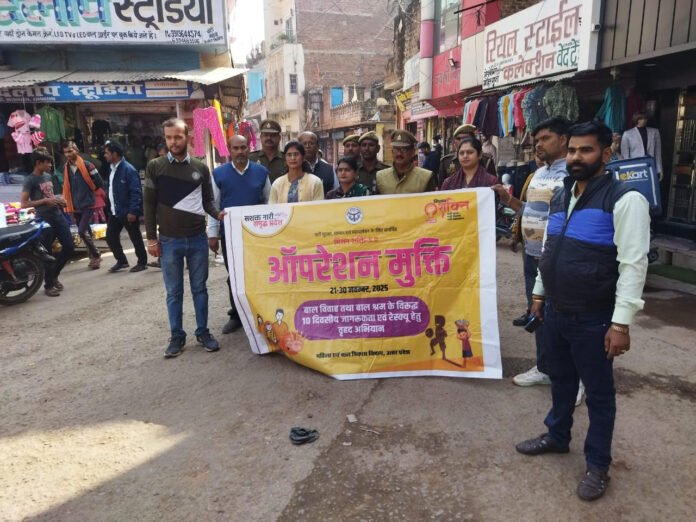 हमीरपुर। जिला प्रोबेशन अधिकारी राजीव कुमार सिंह के निर्देशन में विकास खंड सुमेरपुर और तहसील मौदहा क्षेत्र में मिशन शक्ति 5.0 के अंतर्गत बाल श्रम व बाल विवाह की रोकथाम के लिए व्यापक जागरूकता एवं रेस्क्यू अभियान चलाया गया। यह संयुक्त अभियान महिला कल्याण विभाग, श्रम विभाग, पुलिस विभाग तथा बाल कल्याण समिति (CWC) की टीम द्वारा संचालित किया गया, जिसका उद्देश्य जिले को बाल श्रम एवं बाल विवाह मुक्त बनाना है।