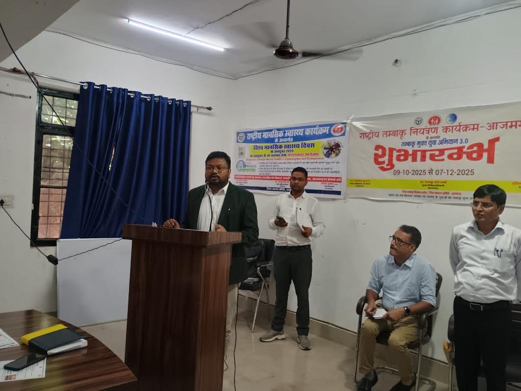 आजमगढ़। विश्व मानसिक स्वास्थ्य दिवस एवं तंबाकू मुक्त युवा अभियान 3.0 के अवसर पर एएनएमटीसी सेंटर स्थित विवेकानंद सभागार में एक संयुक्त गोष्ठी का आयोजन किया गया। कार्यक्रम का शुभारंभ मुख्य अतिथि सचिव जिला विधिक सेवा प्राधिकरण/मुख्य न्यायिक मजिस्ट्रेट श्री अंकित कुमार वर्मा तथा अध्यक्षता कर रहे मुख्य चिकित्साधिकारी डॉ. एन. आर. वर्मा ने किया। मुख्य अतिथि श्री वर्मा ने कहा कि मानसिक स्वास्थ्य और तंबाकू सेवन, दोनों के दुष्प्रभाव से बचाव करना आज की युवा पीढ़ी के लिए सबसे बड़ी चुनौती है। मानसिक स्वास्थ्य से विचलन और अवसाद युवाओं को अंधकार की ओर ले जा रहे हैं, वहीं गुटखा, सिगरेट और अन्य तंबाकू उत्पाद गंभीर बीमारियों के शिकंजे में कस रहे हैं। संभवतः जरूरत से अधिक सूचनाएँ और डिजिटल तनाव भी समाज में अवसाद का बड़ा कारण बनते जा रहे हैं।