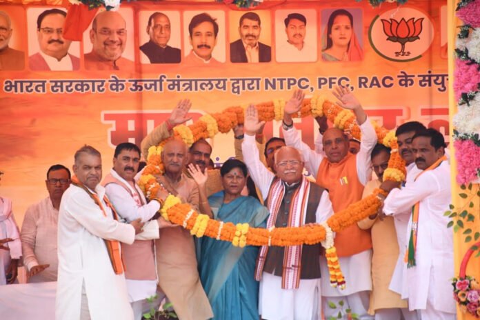 मंत्री आवासन एवं शहरी कार्य, बिजली मंत्रालय, भारत सरकार मनोहर लाल को सांसद जगदम्बिका पाल द्वारा बुके एवं स्मृति चिन्ह भेट कर स्वागत किया गया।