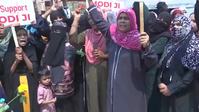 विपक्ष के विरोध के बीच दिल्ली और मध्य प्रदेश की राजधानी भोपाल से अलग तस्वीर सामने आई है। यहां मुस्लिम महिलाएं वक्फ संशोधन विधेयक 2024 के समर्थन में उतरीं। भोपाल में बड़ी संख्या में प्रदर्शन कर रहीं मुस्लिम महिलाओं के हाथों में पीएम मोदी के समर्थन वाली तख्तियां थीं। इनमें पीएम मोदी को धन्यवाद दिया गया है। महिलाओं ने नारे लगाए कि ‘मोदी जी तुम संघर्ष करो… हम तुम्हारे साथ हैं।’