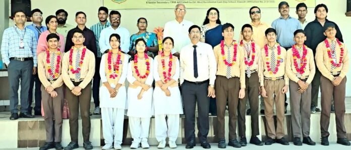 डाॅ.धर्मेन्द्र शर्मा ने विद्यालय के टाॅपर कार्तिक कुशवाहा को विशेष सम्मान देकर उज्जवल भविष्य की शुभकामनायें दीं।इस अवसर पर विद्यालय के प्रधानाचार्य ने सभी छात्र-छात्राओं को माला पहनाकर आर्शीवाद दिया।साथ ही इस अवसर पर परीक्षा प्रभारी अर्जुन सिंह,स्कूल कोर्डिनेटर श्रीमती उरूसा रिजवान,रूपेश कुमार,सचिन तिवारी एवं सभी शिक्षक व शिक्षिकायें मौजूद रहे।