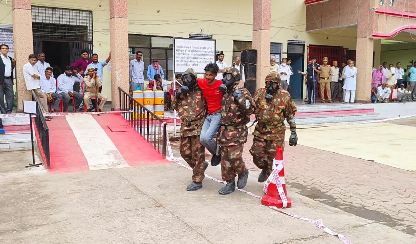 महोबा। शुक्रवार को अपर जिलाधिकारी कुंवर पंकज वि/रा) के अध्यक्षता में आपदा जोखिम न्यूनीकरण और प्रबंधन योजना के तहत 11 राष्ट्रीय आपदा मोचन बल (एनडीआरएफ) क्षेत्रीय प्रतिक्रिया केंद्र, लखनऊ की टीम द्वारा जिला महोबा (उत्तर प्रदेश) के सदर तहसील में जिला आपदा प्रबंधन प्राधिकरण, स्वास्थ्य, पुलिस, राजस्व, अग्निशमन सेवा तथा अन्यहितधारकों के साथ मिलकर केमिकल इमर्जेंसी (CBRN) आपदा पर संयुक्त मॉक अभ्यास किया गया।