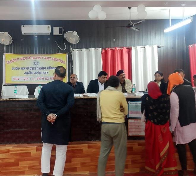 महोबा। सदर तहसील में शनिवार को संपूर्ण समाधान दिवस का आयोजन अपर जिलाधिकारी न्यायिक सुखबीर सिंह की अध्यक्षता में संपन्न हुआ, जहां पर अपर जिलाधिकारी के अलावा अन्य अधिकारियों ने आए हुए फरियादियों की समस्याओं को सुना गया। संपूर्ण समाधान दिवस पर सदर तहसील में कुल 52 शिकायतों को गंभीरता के साथ सुनते हुए अधिकारियों ने 12 शिकायतों का मौके पर निस्तारण किया और शेष शिकायतों को निस्तारण कि लिए संबन्धित विभागीय अधिकारियों को सौंपा गया।