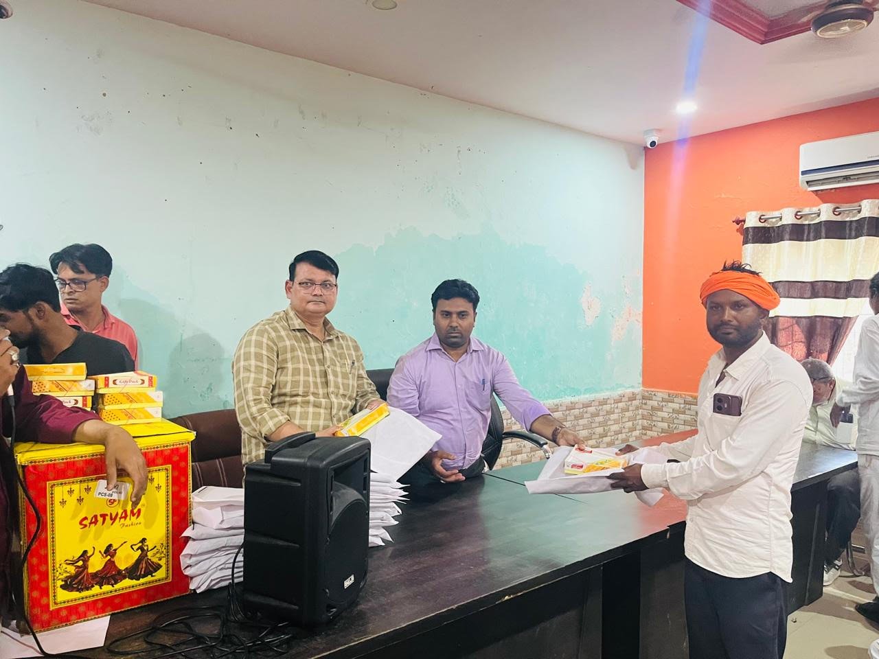डुमरियागंज सिद्धार्थनगर। दीपावली के शुभ अवसर पर नगर पंचायत डुमरियागंज कार्यालय में सभी सुपरवाईजर, ड्राइवर, स्वच्छता कर्मी एवं कार्यालय स्टॉफ को अधिशासी अधिकारी सचिन कुमार एवं लिपिक सैo हसन ताकीब रिजवी द्वारा अंगवस्त्र, मिष्ठान व पीपीई किट का वितरण किया गया। अधिशासी अधिकारी सचिन कुमार ने नगर को स्वच्छ एवं सुंदर बनाये रखने में नगर पंचायत कर्मचारियों की भूमिका सराहनीय बताते हुए कहा कि कर्मचारियों की मेहनत से नगर का वातावरण स्वच्छ और सुंदर बना हुआ है।