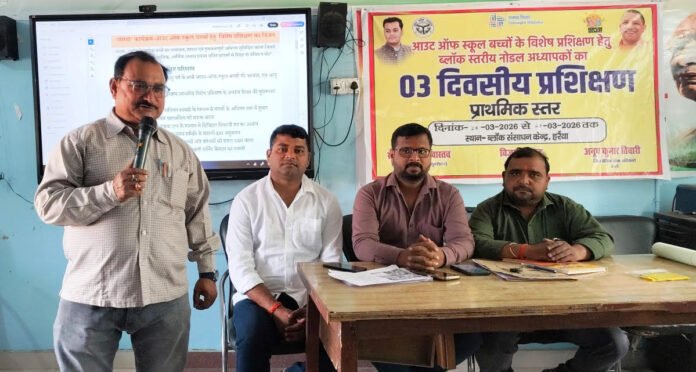 एकेडमिक रिसोर्स पर्सन (एआरपी) मनोज मिश्र, संतोष कुमार शुक्ल, राजीव शुक्ल, काशीराम वर्मा, रवीश कुमार मिश्र और शिक्षक डॉ श्री नारायन मिश्र ने शिक्षकों को यह प्रशिक्षण प्रदान किया। प्रशिक्षकों ने सर्वेक्षण प्रक्रिया, बच्चों की शैक्षिक स्थिति का आकलन करने और उन्हें विद्यालयी शिक्षा में प्रभावी ढंग से शामिल करने के तरीकों पर विशेष जोर दिया। बताया कि बच्चों के लर्निंग गैप को भरने के लिए विशेष ब्रिज कोर्स और गतिविधि आधारित शिक्षण अनिवार्य है। शारदा पोर्टल पर डेटा फीडिंग और बच्चों के बेसलाइन मूल्यांकन की प्रक्रिया के बारे में जानकारी दी। बच्चों को स्कूल के वातावरण में ढालने के लिए उनके मनोवैज्ञानिक संवेदीकरण पर विशेष सत्र आयोजित किया गया।