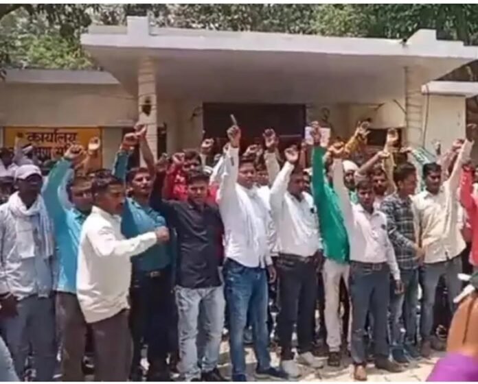 अम्बेडकरनगर बिजली विभाग के आउटसोर्सिंग कर्मचारियों ने नौकरी से निकाले जाने को लेकर अकबरपुर अधीक्षण अभियंता कार्यालय का घेराव पर किया धरना प्रदर्शन।