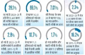 उत्तर प्रदेश, महाराष्ट्र, बिहार, बंगाल व मध्य प्रदेश, 2011-12 में भारत के 65 प्रतिशत अत्यधिक गरीब लोगों का प्रतिनिधित्व करते थे। 2022-23 तक, इन राज्यों ने अत्यधिक गरीबी में समग्र गिरावट में दो-तिहाई योगदान दिया।