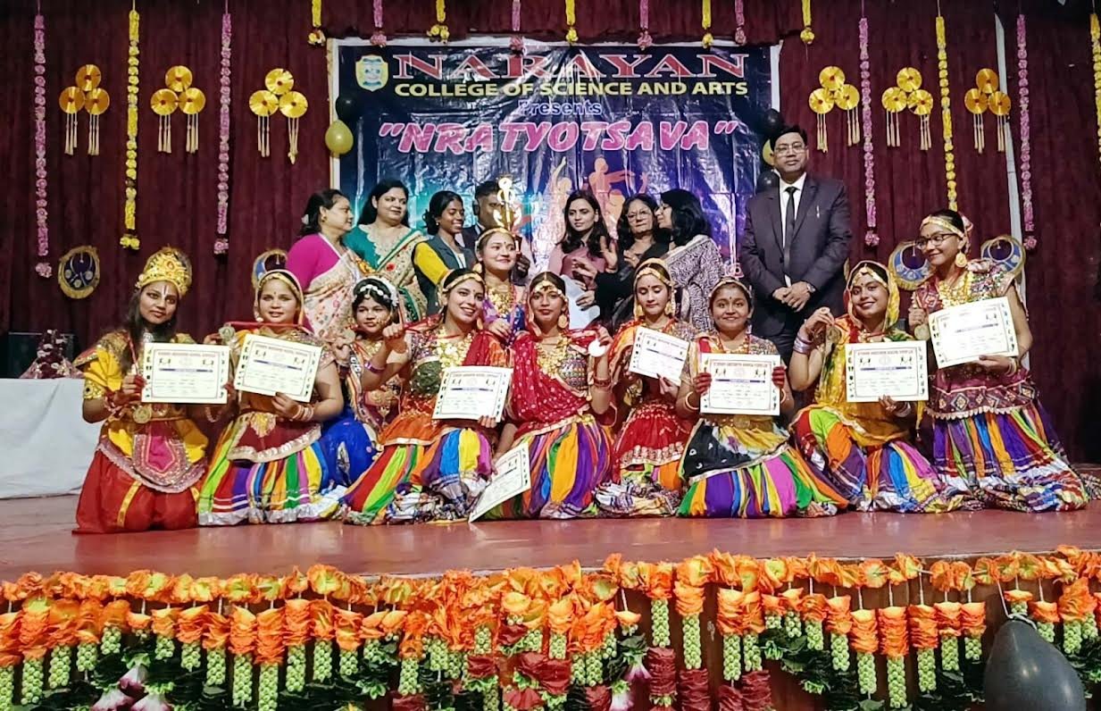 इस अवसर पर प्रधानाचार्य डा.धर्मेन्द्र शर्मा ने अपने उद्बोधन में कहा कि नृत्य कला कौशल का एक बहुत ही पवित्र हिस्सा है।नृत्य के द्वारा बिना बोले ही किसी कहानी या अपनी बात को प्रदर्शित किया जा सकता है।आज के तकनीकी युग में नृत्य कला के नये आयामों और पद्धतियों का विकास हुआ है।नृत्य प्रतियोगिता का आयोजन लोक नृत्य व सांस्कृतिक धरोहर थीम के साथ बालिका सीनियर ग्रुप व जूनियर ग्रुप दो वर्गों में किया गया। बालिका सीनियर डांस ग्रुप में सेंट मैरी इण्टर कालेज ने प्रथम,नारायन कालेज ऑफ साइंस एण्ड आर्ट्स ने द्वितीय व रेडवुड ग्लोबल स्कूल और सेविन हिल्स ने तृतीय स्थान प्राप्त किया।बालिका जूनियर डांस ग्रुप में सेंट मैरी इण्टर कालेज ने प्रथम,सेविन हिल्स इण्टर कालेज ने द्वितीय व हॉली पाइंट एकेडमी, भरथना ने तृतीय स्थान प्राप्त किया। नारायन कालेज ऑफ साइंस एण्ड आर्ट्स के निर्णायक मण्डल में डा.नमिता तिवारी,प्रियंका कुशवाह(मोटीवेशनल स्पीकर,ट्रेनर व कोरियोग्राफर)श्रीमती पूनम शर्मा व विद्यालय के प्रधानाचार्य श्री शर्मा ने इन सभी विजयी प्रतिभागियों को पुरस्कृत करके सम्मानित किया।