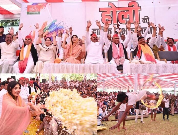 सैफई,इटावा। समाजवादी पार्टी का गढ़ सैफई बुधवार को फिर समाजवादी रंग में डूबा नजर आया।गांव की गलियों से लेकर आयोजन स्थल तक लाल और हरे झंडों की छटा दिखाई दी।अवसर परंपरागत फूलों की होली का था,जिसमें राष्ट्रीय अध्यक्ष अखिलेश यादव ने परिवार सहित हजारों कार्यकर्ताओं और समर्थकों के साथ पुष्प वर्षा के बीच होली खेलकर शुभकामनाएं दीं।मंच से फाग की स्वर लहरियां गूंजती रहीं और पूरा वातावरण लोक संस्कृति की मिठास से सराबोर रहा।फूलों की होली की परंपरा लगभग तीन दशक पूर्व समाजवादी पार्टी के संस्थापक मुलायम सिंह यादव ने शुरू कराई थी।