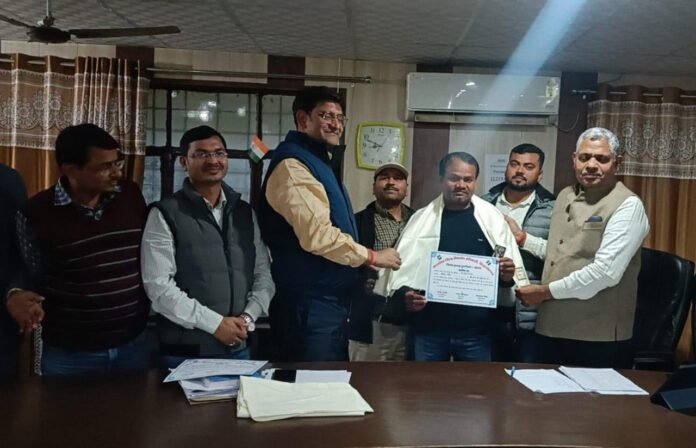 एस डी एम ने शोहरतगढ़ तहसील कार्यालय में बीएलओ राम सूरत यादव को किया सम्मानित