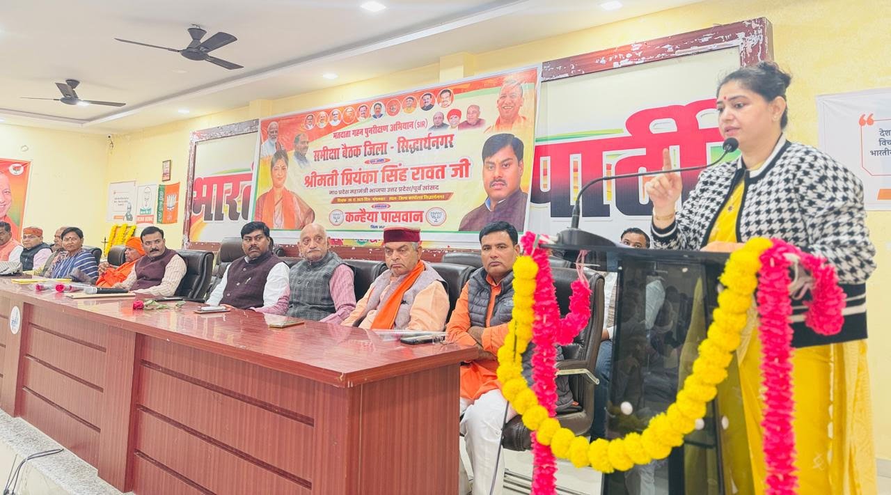 सिद्धार्थनगर। भाजपा जिला कार्यालय पर मंगलवार को भाजपा की प्रदेश महामंत्री प्रियंका रावत ने विशेष गहन पुनरीक्षण (SIR) अभियान की समीक्षा की। बैठक की अध्यक्षता करते हुए जिलाध्यक्ष कन्हैया पासवान ने सभी अतिथियों का स्वागत अभिनंदन किया।